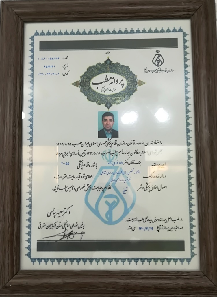 گواهینامه ها،مجوزها و مدارج علمی اخذ شده دکتر نوری زاده